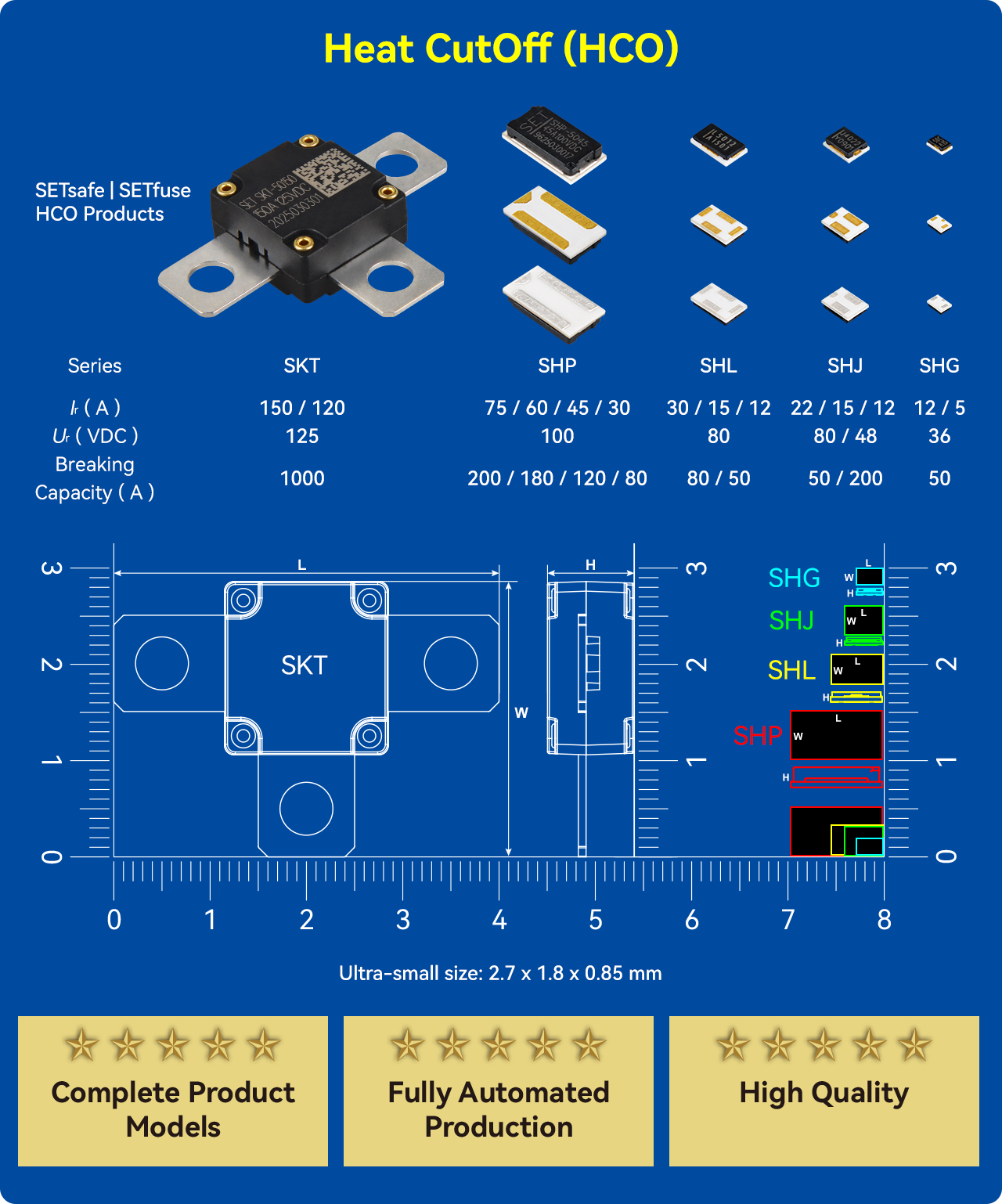 For lithium battery secondary protection, SETsafe | SETfuse also offers a broader range of products and diverse protection methods. For detailed information, please refer to the attached PDF document.