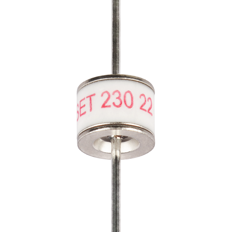 Gas Discharge Tube (GDT) is a single-gap or multi-gap switching overvoltage protection device. Under normal circumstances, the GDT is in a high-impedance state; when suffer a surge, the GDT will change from a high-impedance state to a low-impedance state, and release the surge energy to the ground, reducing the residual voltage of the circuit, thereby protecting the equipment circuit or protect the human body from the hazards of transient overvoltage. GDT is formed by high-temperature sealing of metal electrodes, metallized ceramics, inert gas or other mixed gases. Gas Discharge Tube (GDT) are widely used in overvoltage protection of signals, power supplies and various ports. SETsafe | SETfuse's Gas Discharge Tube products have a voltage of 70 ~ 4500 V, a flow (@8/20 μs) 0.5 ~ 200 kA, a full range of safety certifications including: UL, cUL, TUV, and meet the RoHS, REACH requirements.