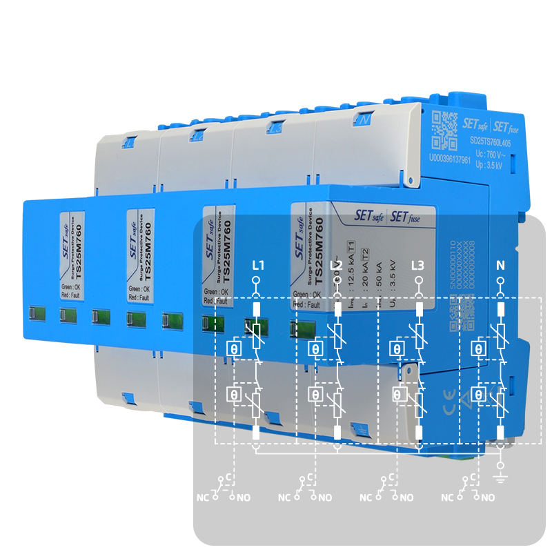 Metal Oxide Varistor (MOV) is a nonlinear resistance component with zinc oxide (ZnO) as its main constituent. The resistance of an MOV is sensitive to changes in the applied voltage. Below the threshold voltage, the MOV exhibits high resistance, allowing only a negligibly small leakage current to flow. Once the threshold voltage is exceeded, the resistance of the MOV drops sharply, enabling the conduction of a large current. This characteristic makes the MOV suitable for detecting and suppressing surge voltage and overvoltage, thereby protecting the circuit from damage caused by excessive voltage. The Metal Oxide Varistor (MOV) finds wide application in various fields such as photovoltaics, communication, lightning protection, power supply, and power strips. It serves to suppress transient overvoltage and absorb surge energy within the circuit. SETsafe | SETfuse offers Metal Oxide Varistors (MOV) with maximum peak current ratings ranging from 0.75 kA to 70 kA, and maximum continuous voltage ratings from 14 VAC to 750 VAC. These MOVs are equipped with safety certifications such as UL, cUL, TUV, and CQC, and comply with RoHS and REACH requirements. The T1 surge protection type varistor selfdeveloped by SETsafe | SETfuse. has high surge current capacity, especially outstanding 10/350μs impulse capacity, and good AC & DC characte-ristics. It suits all the surge protection scenarios of buildings, photovoltaic and wind power applications.